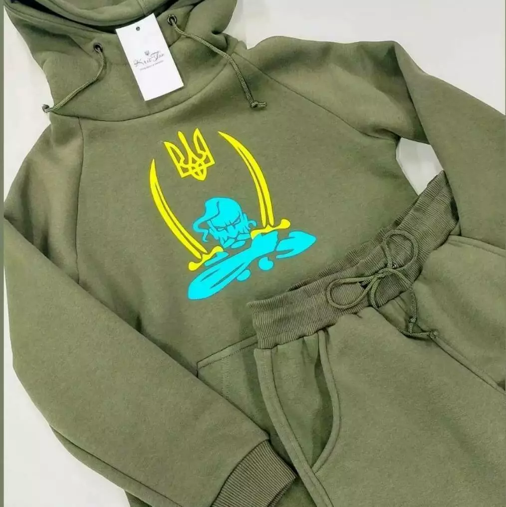 Худі костюму виконано в класичному вільному крої, прямого силуету,