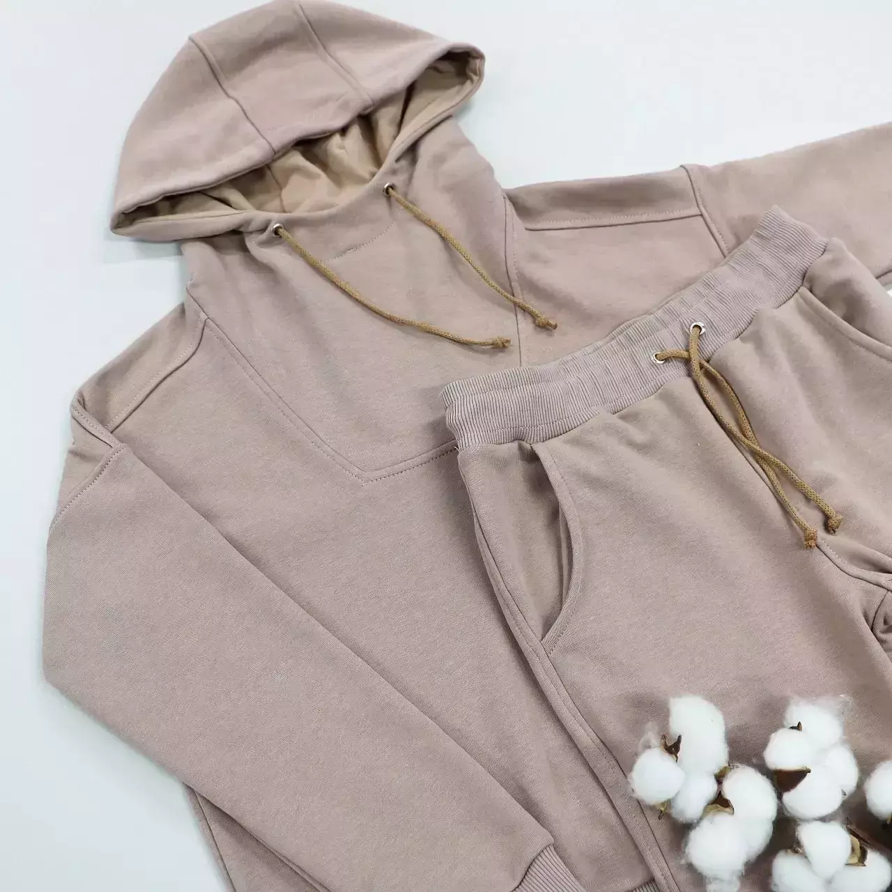 Худі костюму виконано в класичному вільному крої, прямого силуету,