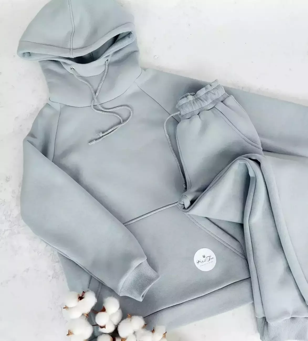 Худі костюму виконано в класичному вільному крої, прямого силуету,