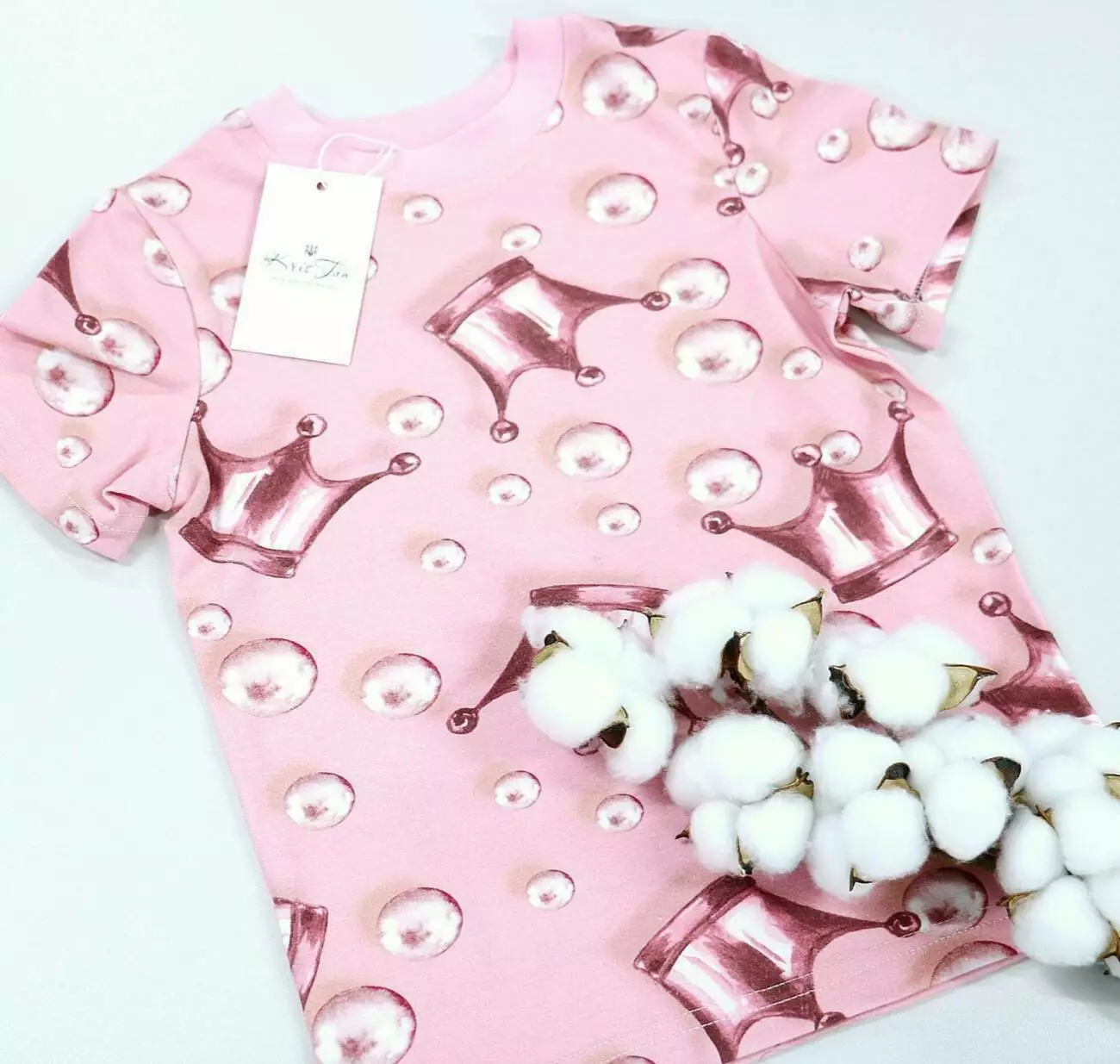 Дитяча футболочка зі стрейч-куліру 95% бавовни, 5% еластану високої якості. Тканина приємна на дотик,не кашлатиться, не линяє. Футболочки добре носяться і не виклакають алергію. При умові виконання правил догляду, футболочки прослужать досить тривалий час.