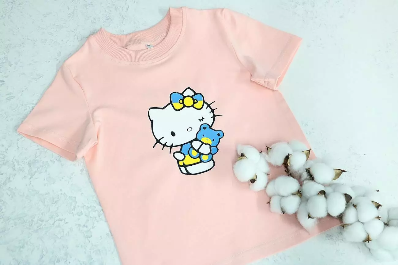 Футболка дитяча з принтом "Kytty" пудра 116, 122, 128р.