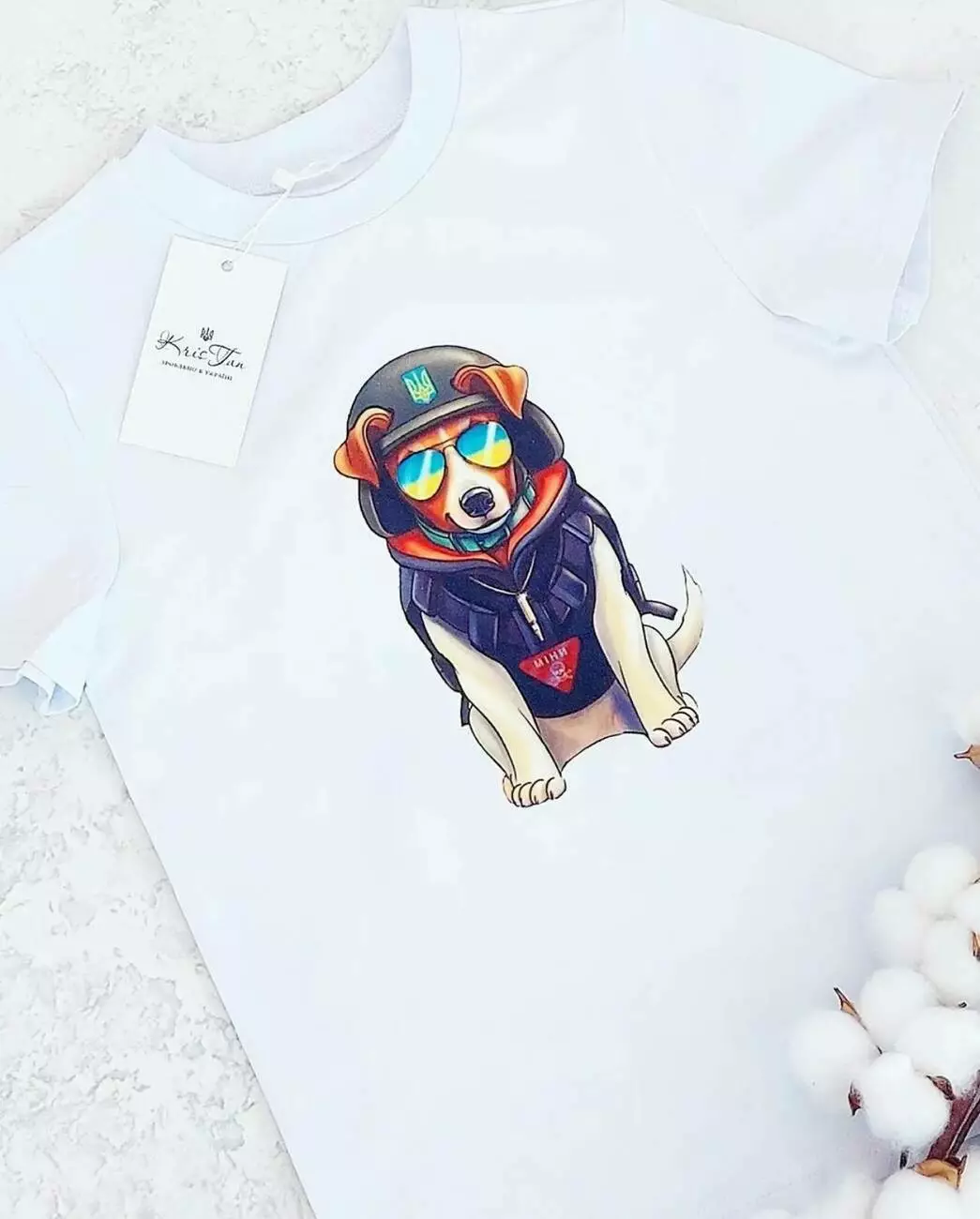 Футболка дитяча з принтом "Патрон в окулярах" біла 134, 140, 146р