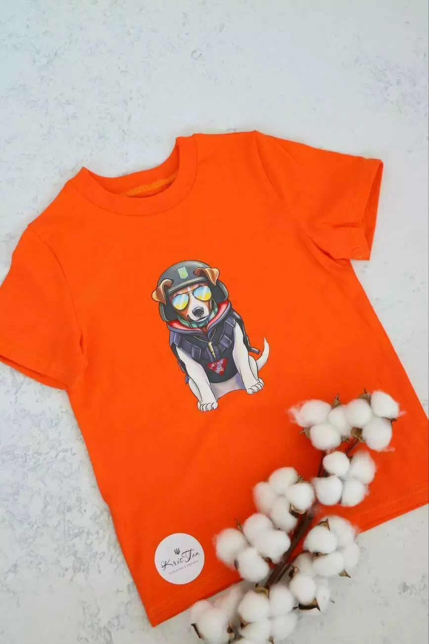 Футболка дитяча з принтом "Патрон в окулярах" помаранчева 152, 158р