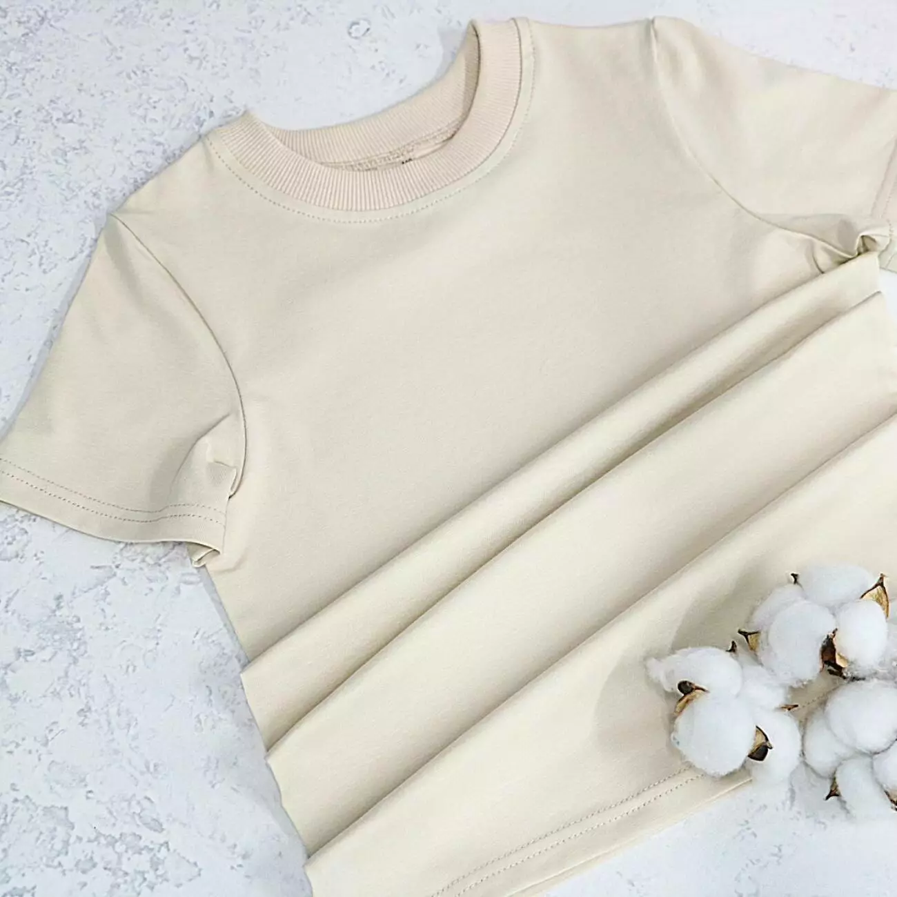Дитяча футболочка зі стрейч-куліру 95% бавовни, 5% еластану високої якості. Тканина приємна на дотик,не кашлатиться, не линяє. Футболочки добре носяться і не виклакають алергію. При умові виконання правил догляду, футболочки прослужать досить тривалий час.